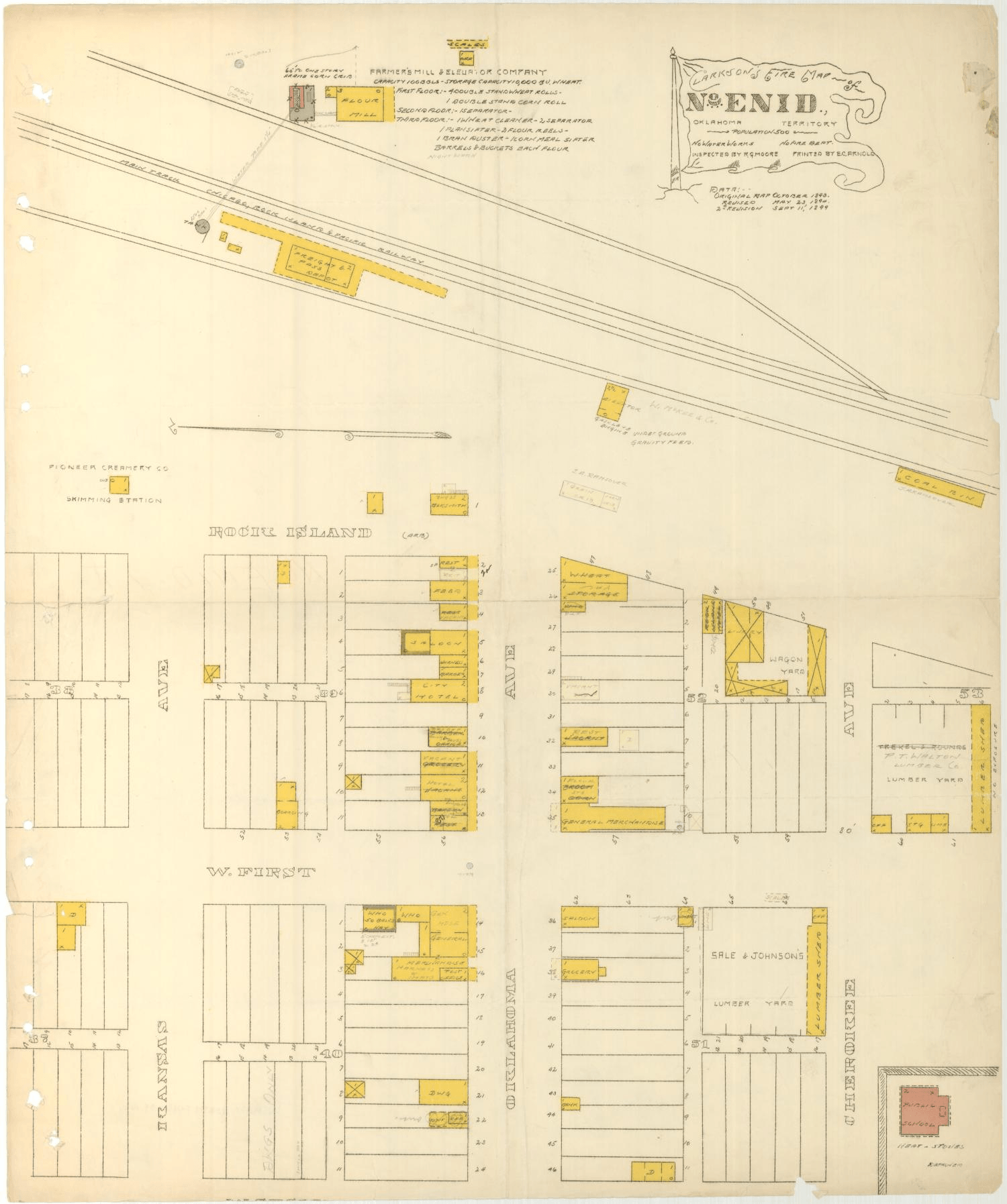 The town of North Enid, situated in Garfield County in north-central Oklahoma, began its existence in 1889 as Enid Station on the Chicago, Rock Island and Pacific Railway right-of-way in the Cherokee Outlet. Prior to the Cherokee Outlet land opening scheduled for September 16, 1893, the location was preliminarily designated as the site for the county seat of O County (later Garfield County), but before the opening it was discovered that four Cherokee allottees had taken land at or near the site. In order to avoid legal problems, the U.S. Department of the Interior changed the county seat designation to a place approximately three miles south of Enid Station. Following the September 16, 1893, Cherokee Outlet land run the Rock Island refused to stop any of its trains at the south location. The ensuing "Enid Railroad War," over whether the railroad town or the government town would dominate, lasted until August 1894 when legal action forced the Rock Island to open a station at the south town.