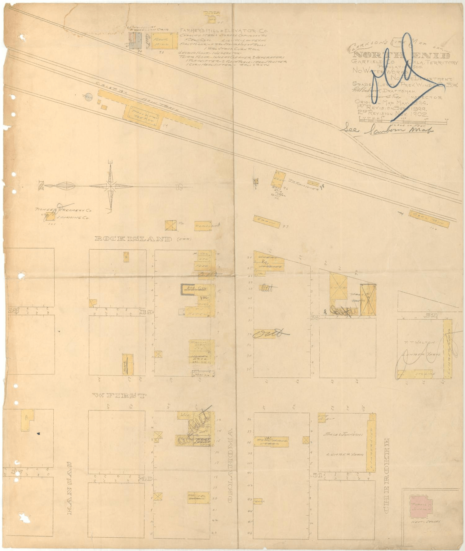 North Enid functioned for several decades as an agricultural center in the shadow of its larger neighbor. In 1900 the town had a population of only 205. By 1918 it had declined by nearly half, but it retained two grain elevators and a gristmill as well as a school, a bank, and a church. The town remained stubbornly independent for six decades despite a population that fluctuated between 100 and 200 and despite the loss of its post office in 1923.